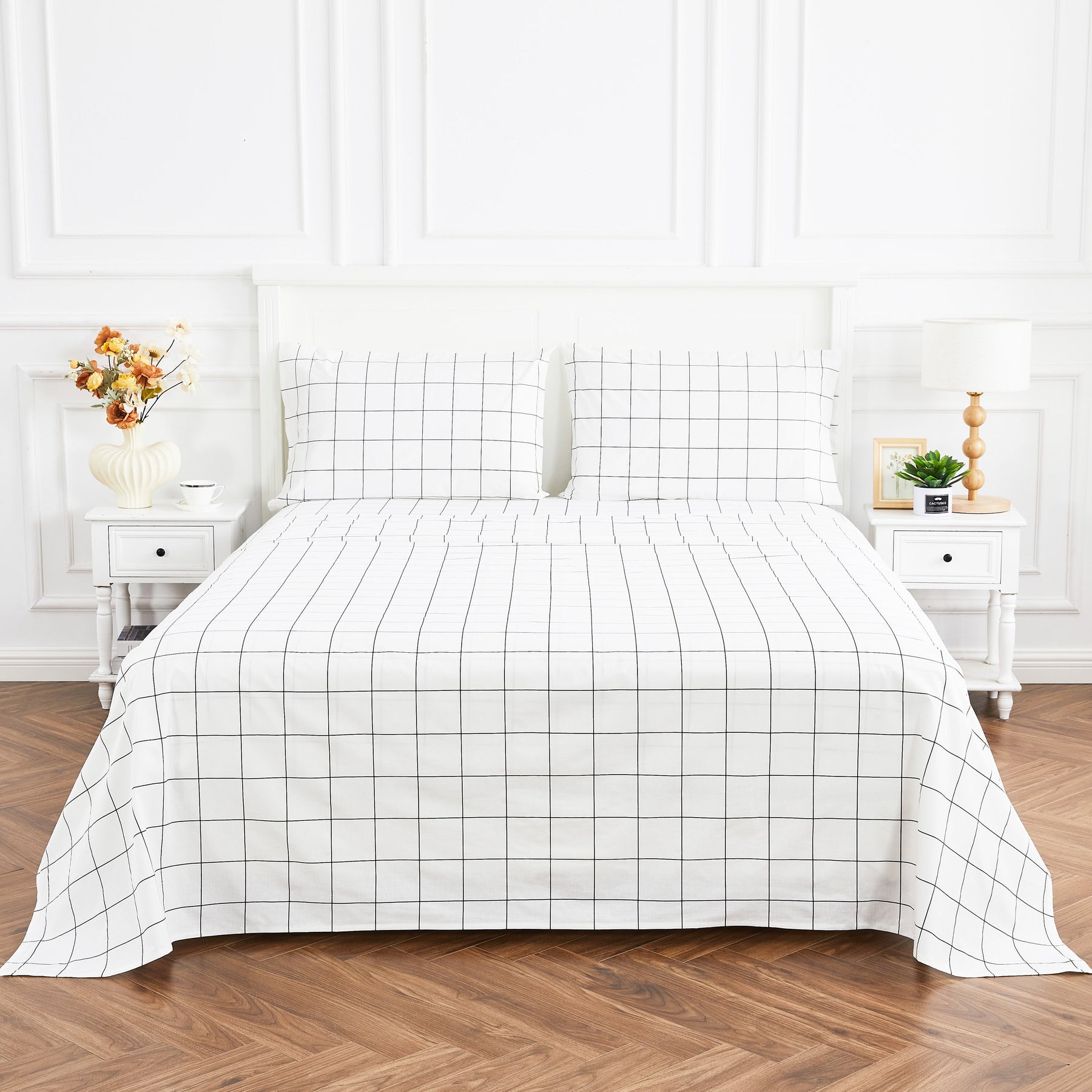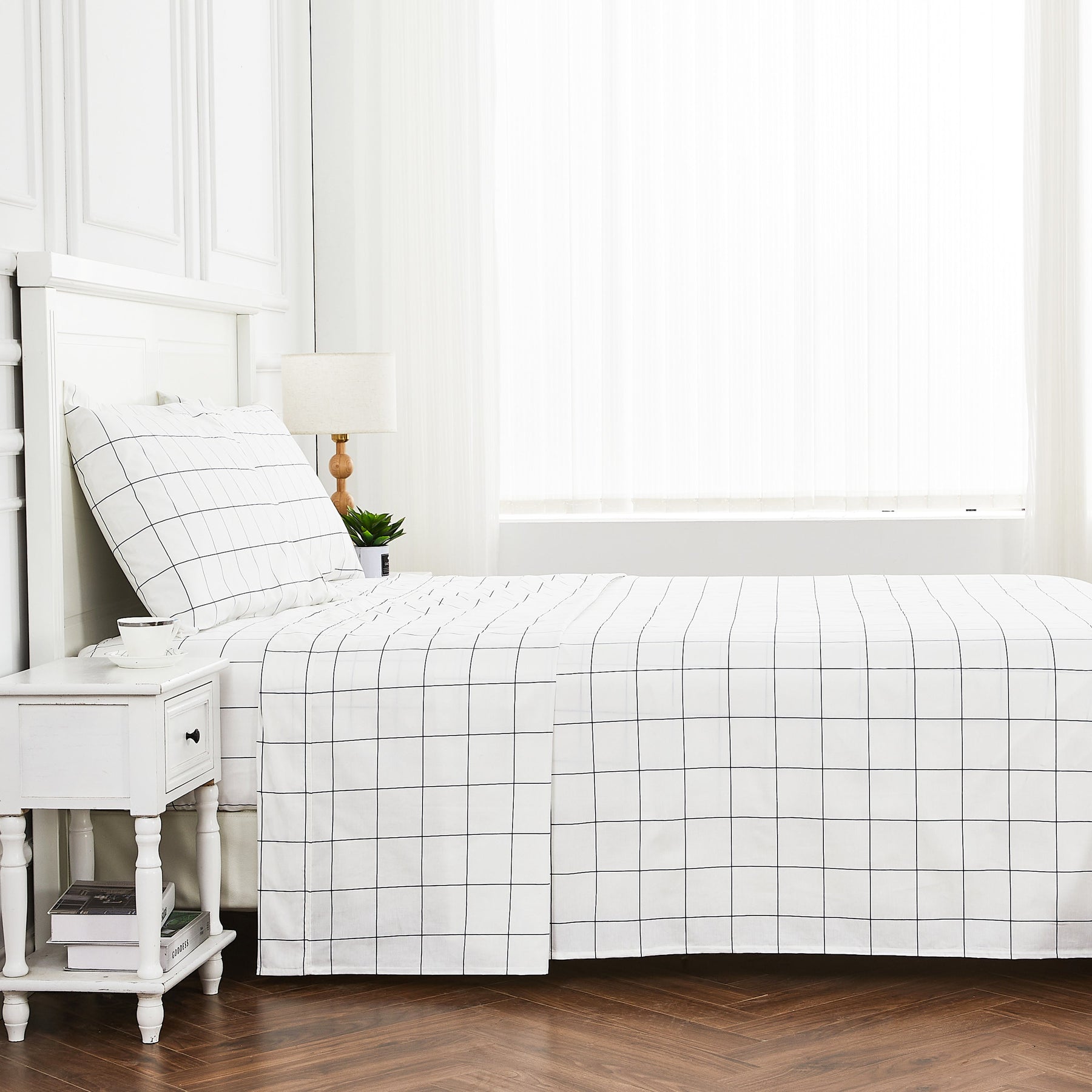 Grid Printed Cotton Percale Sheet Set