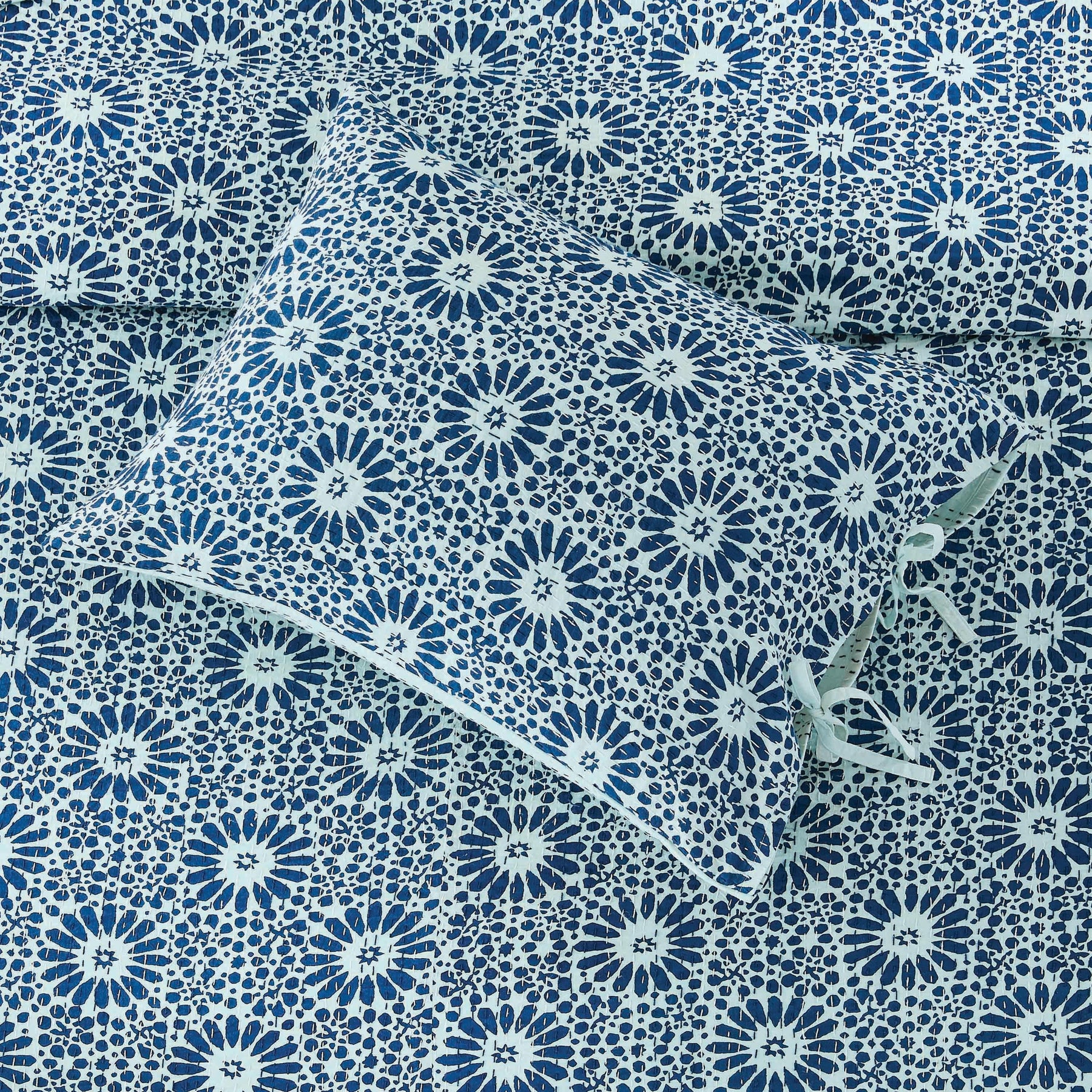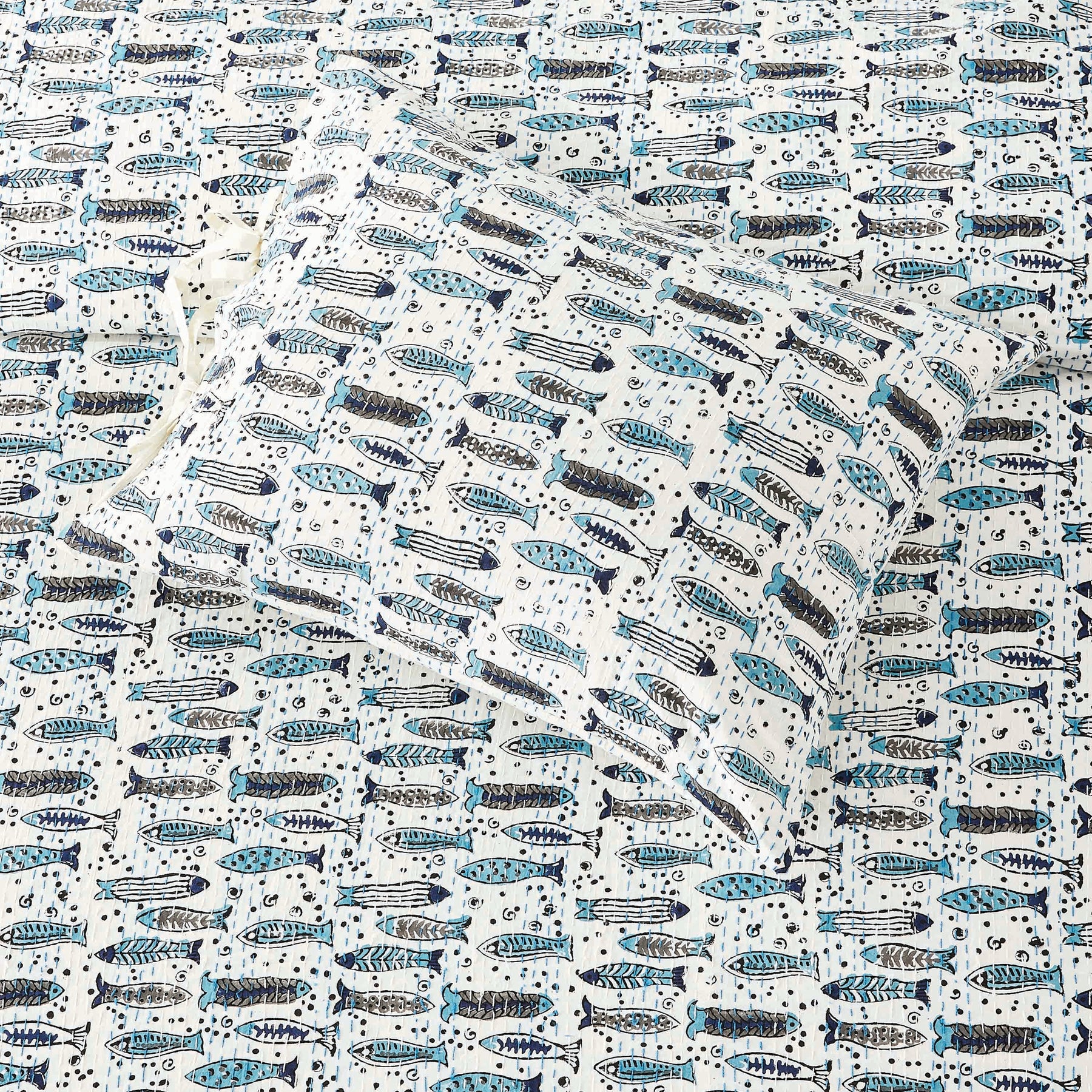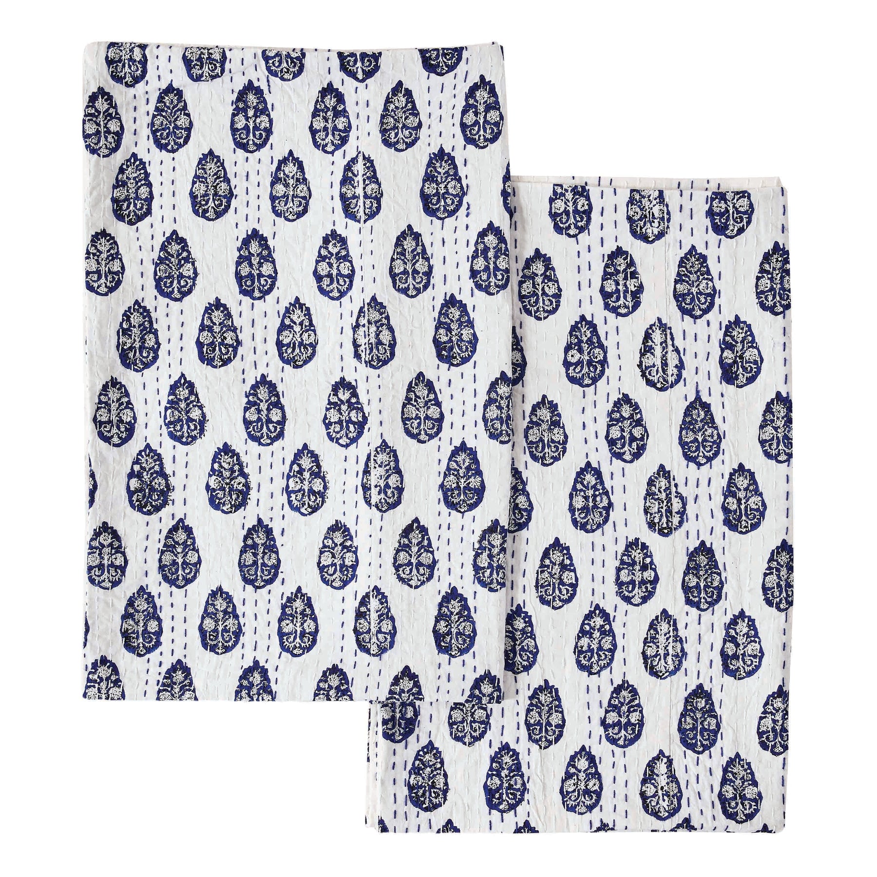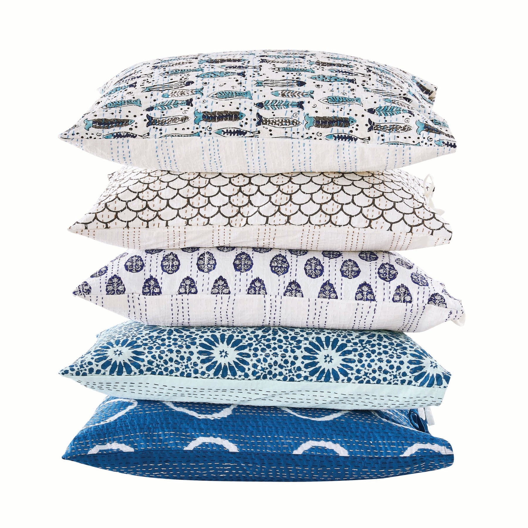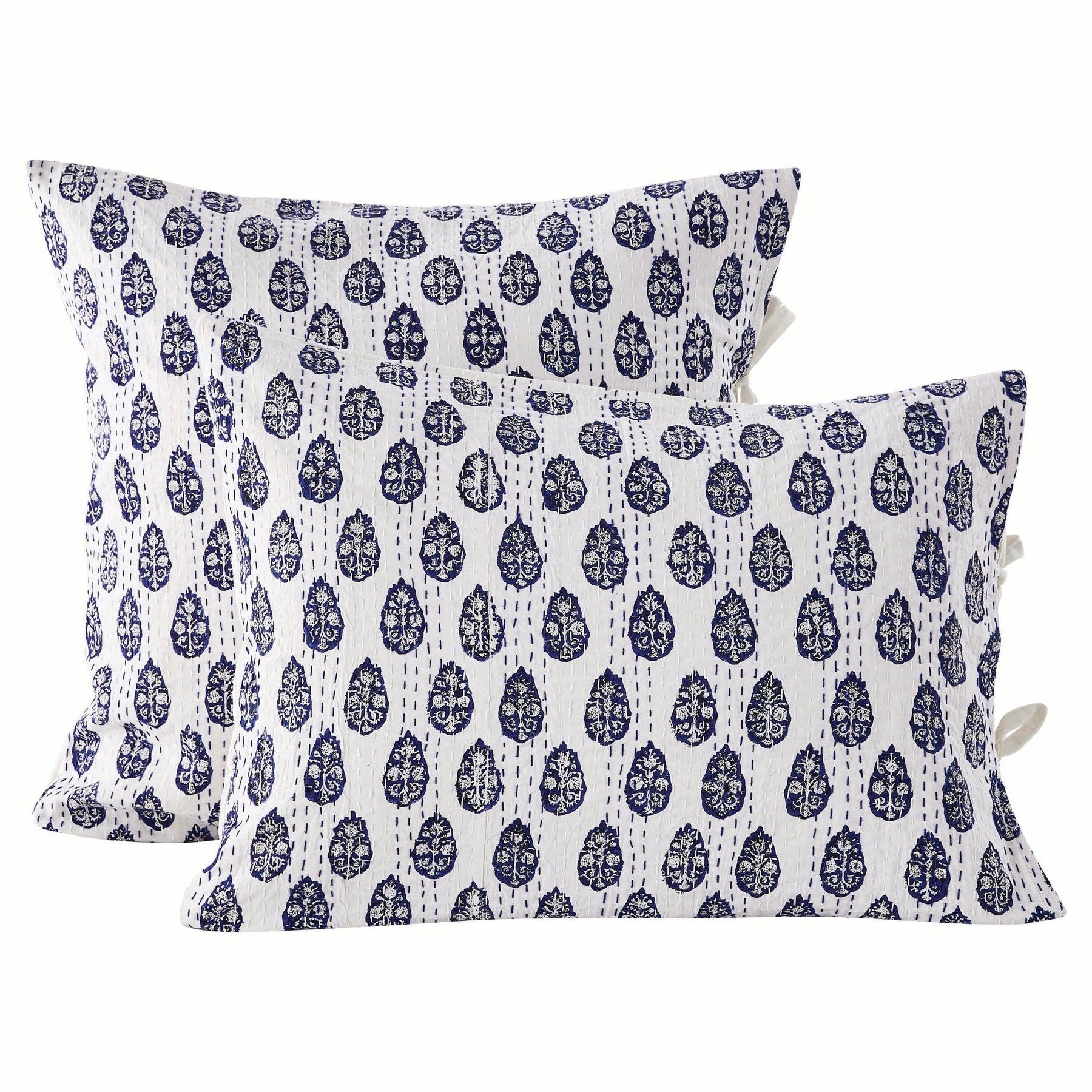 Hand Stitched Block Print Kantha Pillow Sham Pairs
