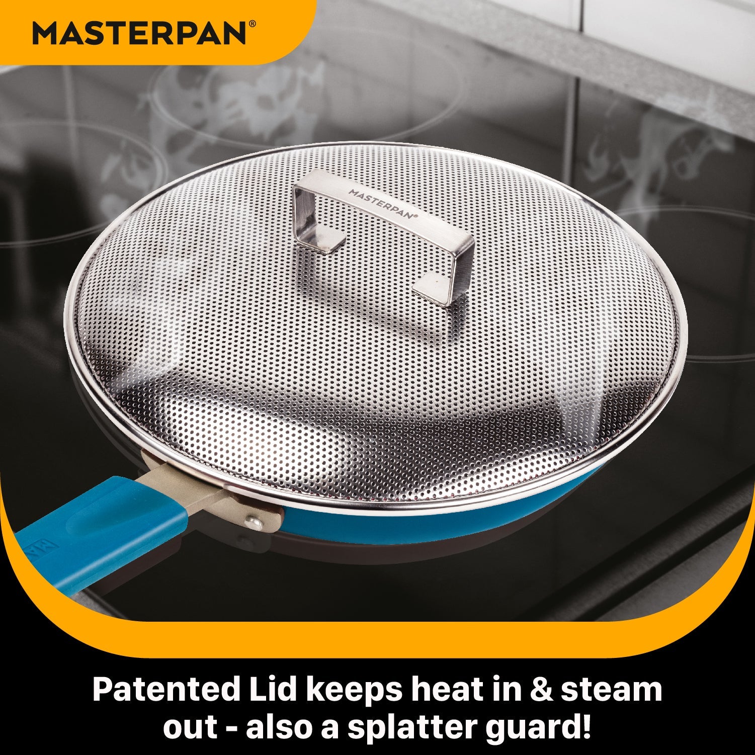 MASTERPAN Ceramic Nonstick Stovetop Oven Frypan & Skillet & Stainless Steel Lid Set, Azure Color 9.5"(24cm)