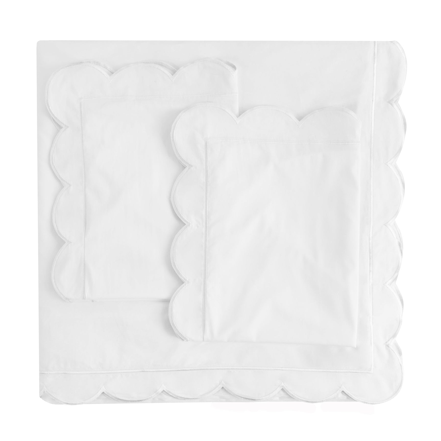 Scallop Frame Embroidered Cotton Percale Duvet Set