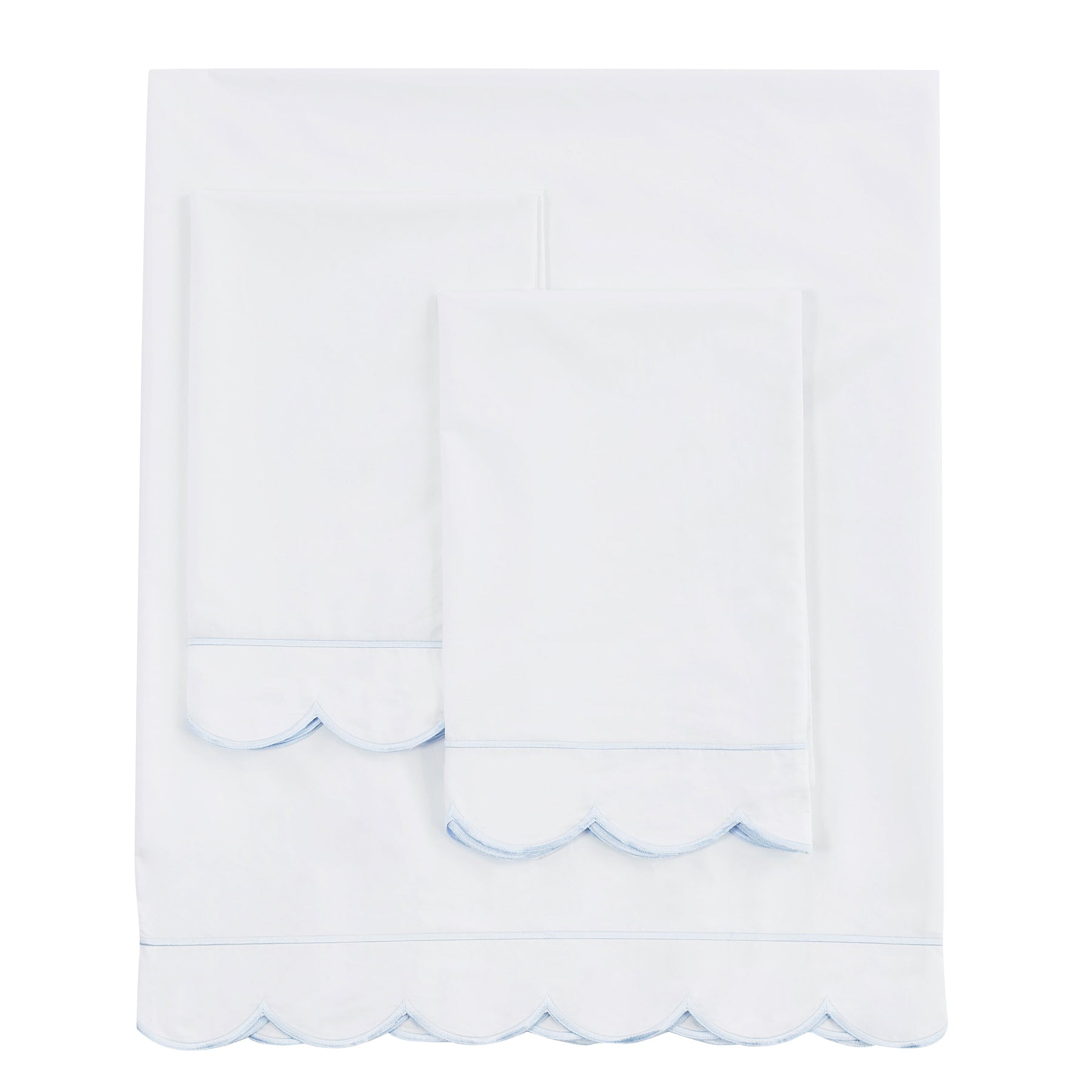 Scallop Frame Embroidered Cotton Percale Sheet Set