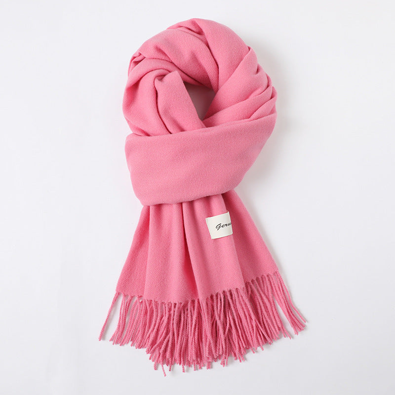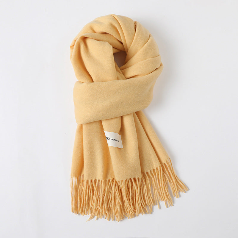 Simple Solid Color Tassel Shawl Autumn And Winter Warm Artificial Cashmere Scarf